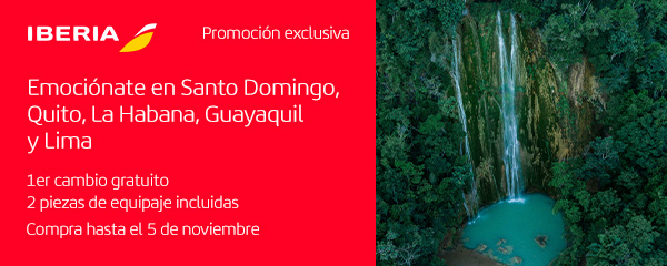 Os informamos de la siguiente promoción exclusiva con la compañía Iberia, para volar a Santo Domingo, Quito, La Habana, Guayaquil, y Lima, que puedes reservar a través de Smytravel/passengy, hasta el 5 de noviembre.